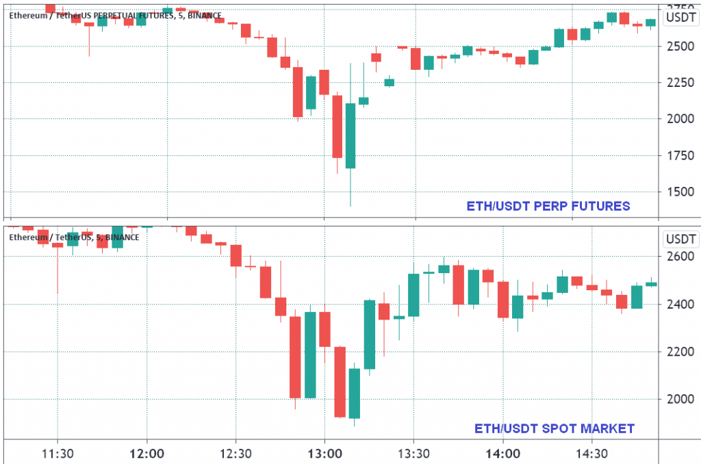 Take notice of how Ether/USDT perpetual contracts at Binance reached a $1,400 intraday low while the regular spot market bottomed at $1,888. This $488 difference, or 26%, was likely caused by aggressive liquidation orders, which totaled $2 billion at Binance.
