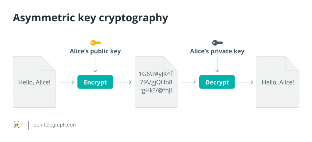 In the 1970s, an alternative method of secret-sharing emerged known as asymmetric key encryption, or public key cryptography. In this system, each party would have a pair of public and private keys. If Alice wanted to send a secure message to Bob, she would encrypt the message with Bob’s known public key. Bob would then decrypt Alice’s message with his own private key. In this system, neither party has to agree on a shared secret in advance. Alice can also digitally sign her message to Bob using her private key, allowing Bob or anyone else with knowledge of her public key to verify the message’s authenticity.
